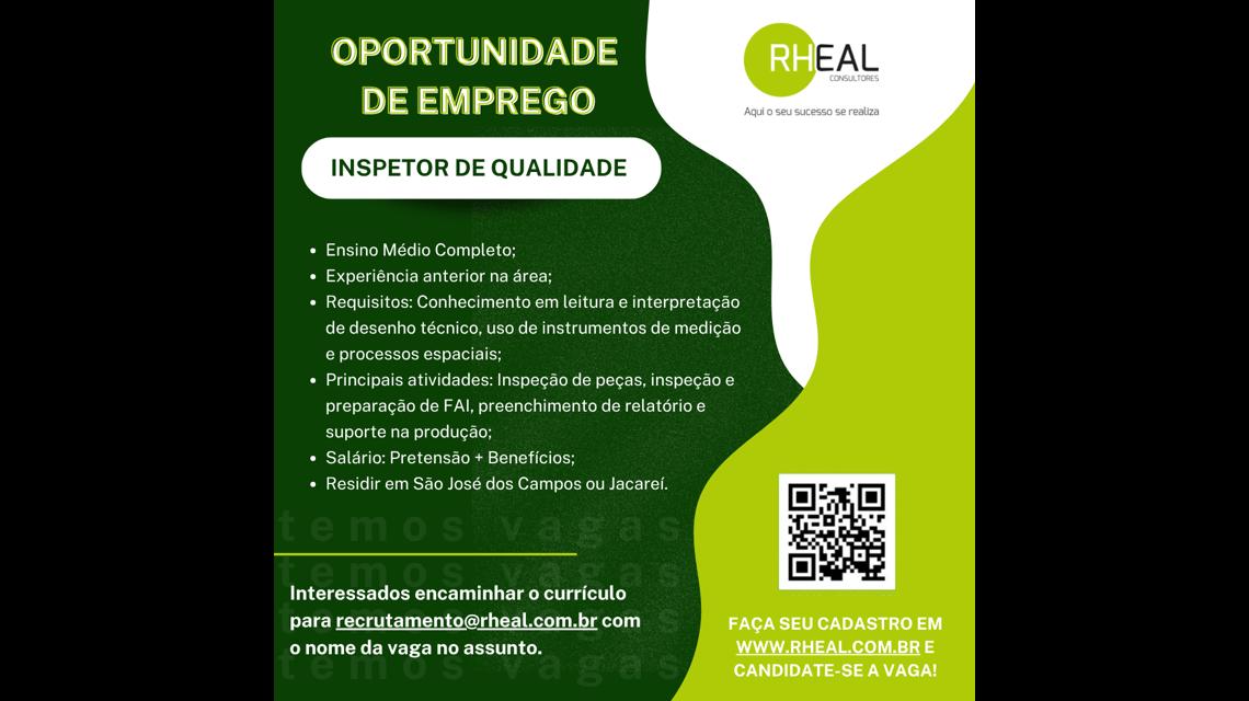 Formação acadêmica – Técnico de Mecânica ou afins ou Curso de Inspetor de Qualidade.
