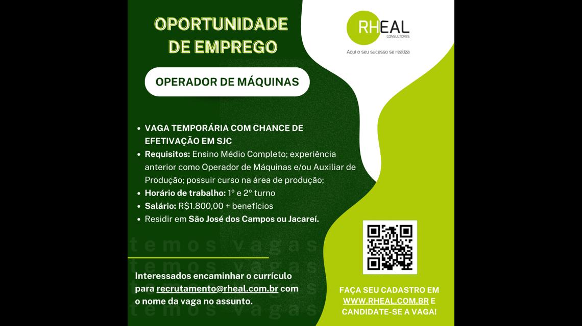 - Experiência anterior como Operador de Máquinas e/ou Auxiliar de Produção;